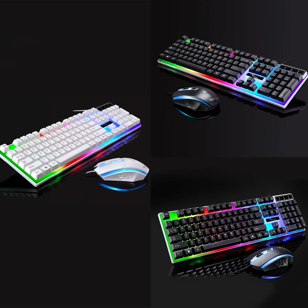 2 шт., эргономичный светодиодный комплект с подсветкой, Проводная игровая подставка для запястья, клавиатура, игровая мышь