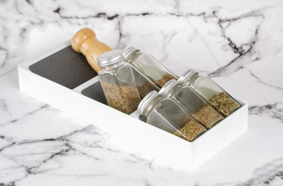 Кухонная стойка для хранения специй 8 отверстий держатель для бутылки для специй органайзер для ящика шкафа для специй Продукт: стойка для хранения специй Цвет: серый Материал: полипропилен Материал бутылки |: стекло Размер: 39,5*10*4,2 см/15,6*4*1,65 дюймов Бутылка Размеры: 4,3*9,5 см/1,7*3,75 дюймов Используется для: держатель для бутылки для специй Посылка включает в себя: 1 шт. органайзер для ящика для специй