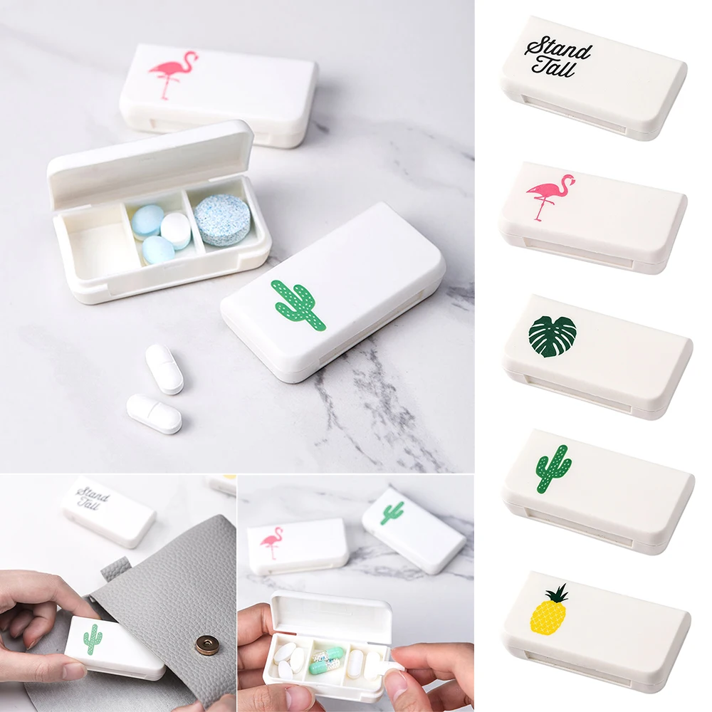Характеристики: три сетки в соответствии с популярными элементами | Простой маленький ящик для таблеток из трех предметов для удобного хранения и переноски | Персонализированный принт с растениями и животными