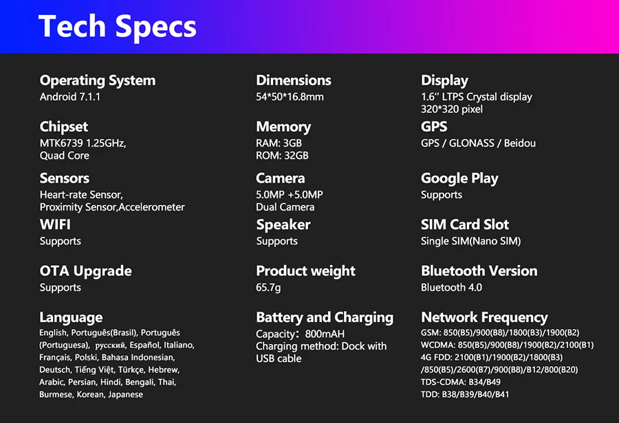 Функции:Сеть 4G (глобальные полосы), GPS/ГЛОНАСС, Google Play, голосовой поиск, Автономная музыка,WiFi, погода, часы лица для любого случая, приложения, часы лица и уведомления, телефонная книга, будильник, Bluetooth, браузер, календарь, камера, электронная книга, MP3, MP4, дополнительные, монитор сердечного ритма, шагомер, напоминание о звонках, удаленная музыка, уведомление о сообщениях, удаленная камера, ответ на вызов, вызов на циферблат.Изображения Zeblaze THOR 5 Pro