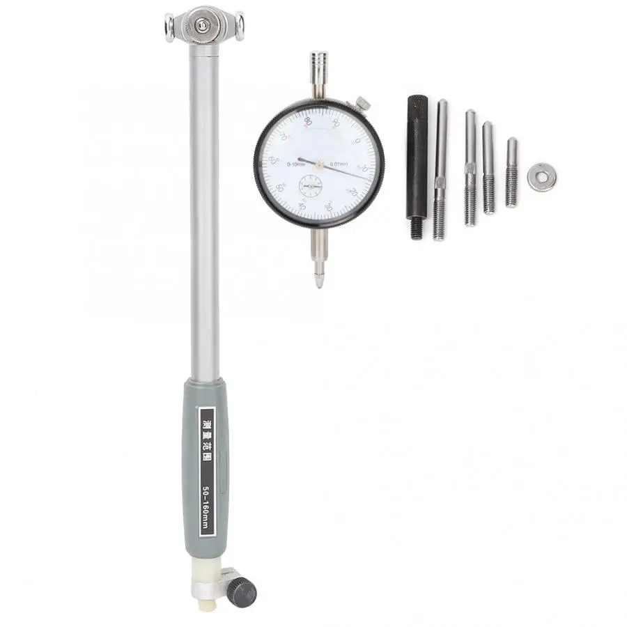 Манометр используется для измерения внутренних размеров рабочих частей методом сравнения. Манометр оснащен хорошим направляющим защитным мостом, который может быть самоцентрируемым точно и надежно. Подвижная наковальня с одной стороны и взаимозаменяемая с другой стороны, которая служит для установки диаметров отверстия. Диапазон измерения диаметра отверстия составляет 50-160 мм. Чехол для хранения для удобной переноски.