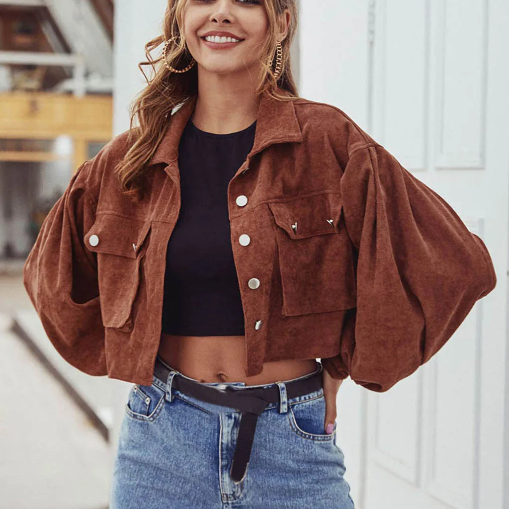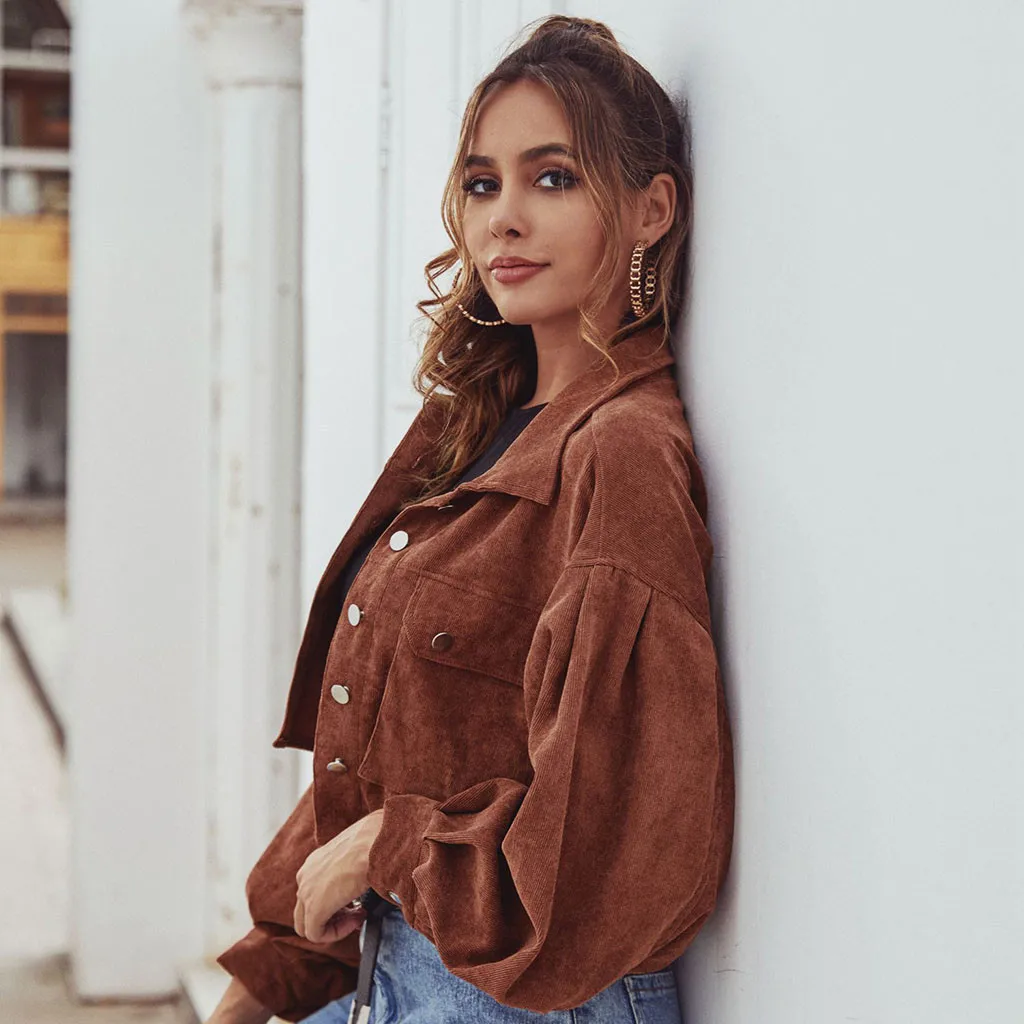 Большой размер Женская винтажная Вельветовая куртка супер короткий топ пальто новая мода уличная одежда с длинным рукавом однотонное пальто Верхняя одежда