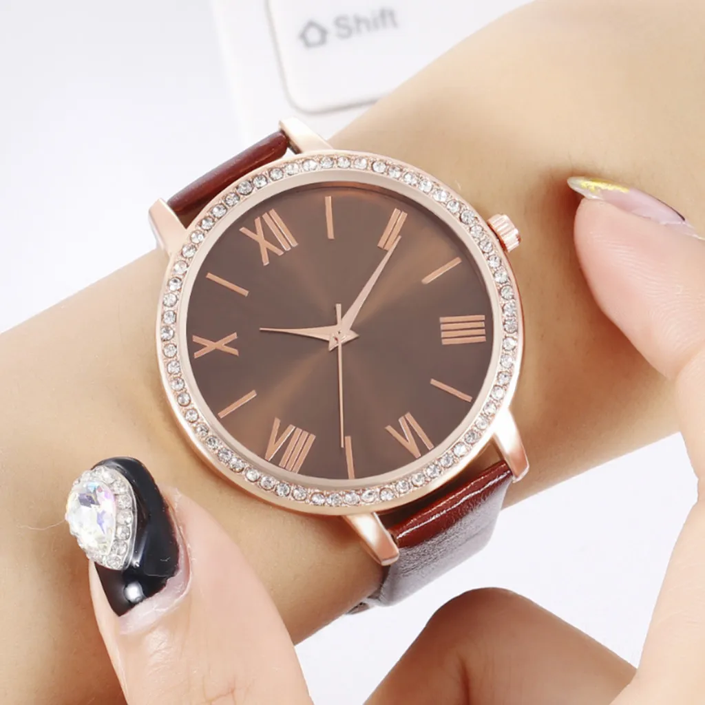 Модные повседневные женские часы, дамские часы, кожаный ремень, бриллианты, римские весы, кварцевые наручные часы, подарок, женские часы, reloj mujer