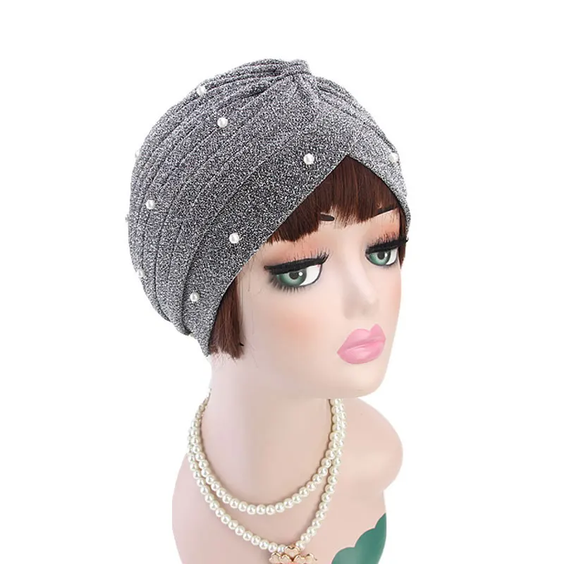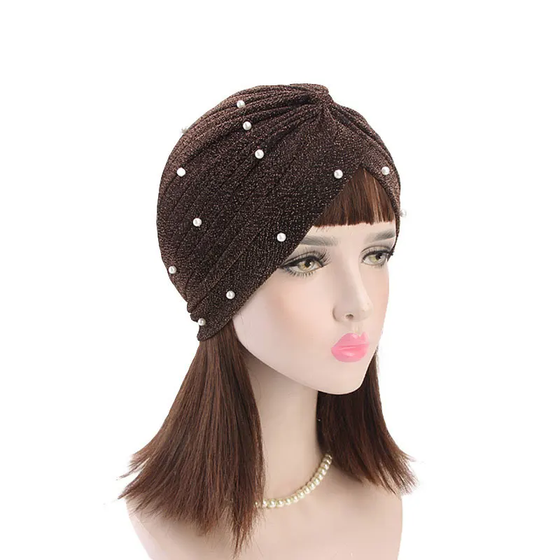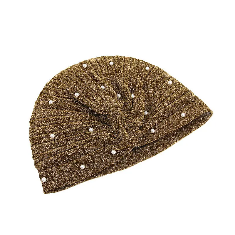 Хиджаб для мусульманок, блестящий тюрбан, золотой Блестящий Жемчуг, украшенный бусинами, обруч на голову, индийская Кепка