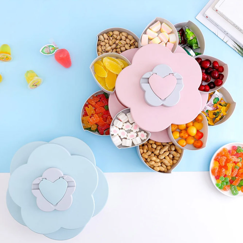 Креативное цветочное лепестковое блюдо для фруктов и конфет, коробка для хранения, двухслойная, 5 решетчатых орехов, поднос для закусок, вращающиеся цветы, коробка для еды, вечерние, свадебные