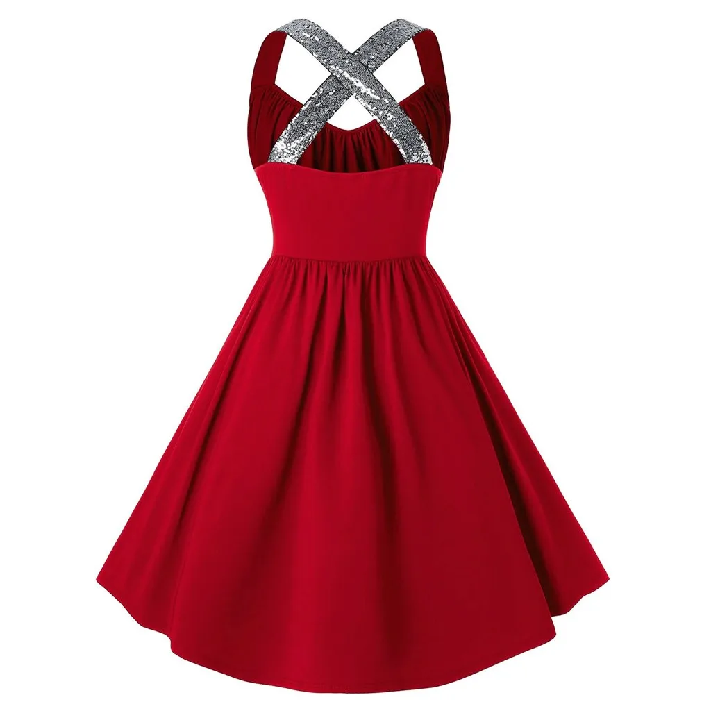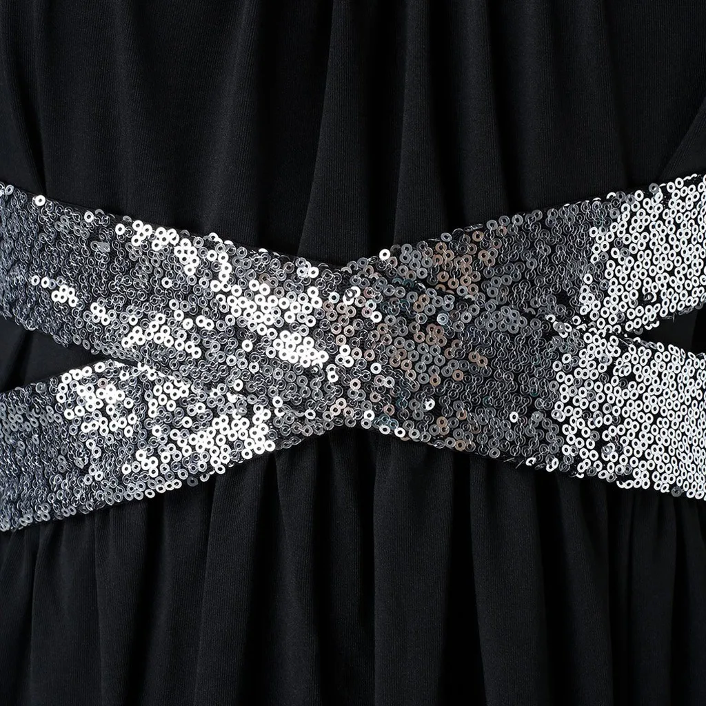 Модные женские Повседневные Вечерние платья без рукавов с блестками крест-накрест
