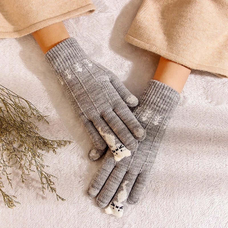 Женские вязаные перчатки с сенсорным экраном и рисунком кошек, зимние теплые варежки с полным пальцем