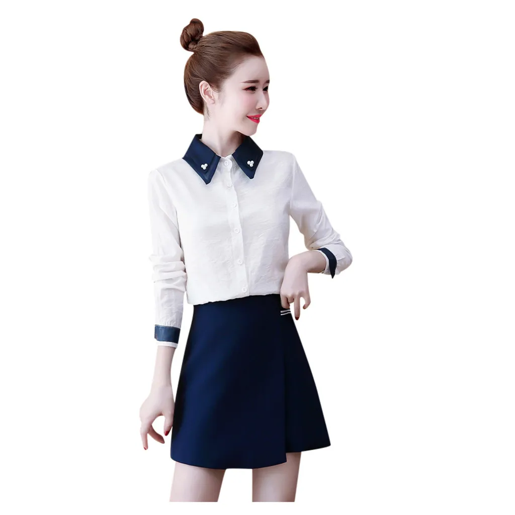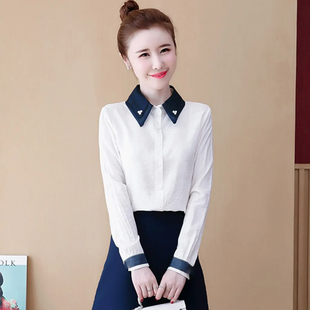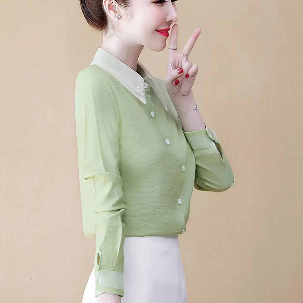 Новая женская шифоновая Осенняя Повседневная рубашка с длинным рукавом, украшенная бусинами
