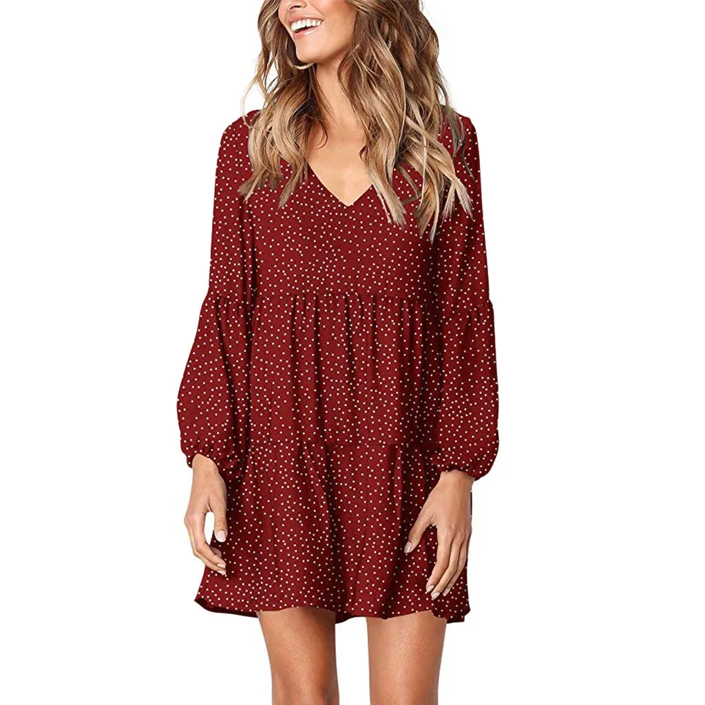 Женское повседневное мини-платье в горошек с v-образным вырезом, свободное платье с коротким рукавом и оборками