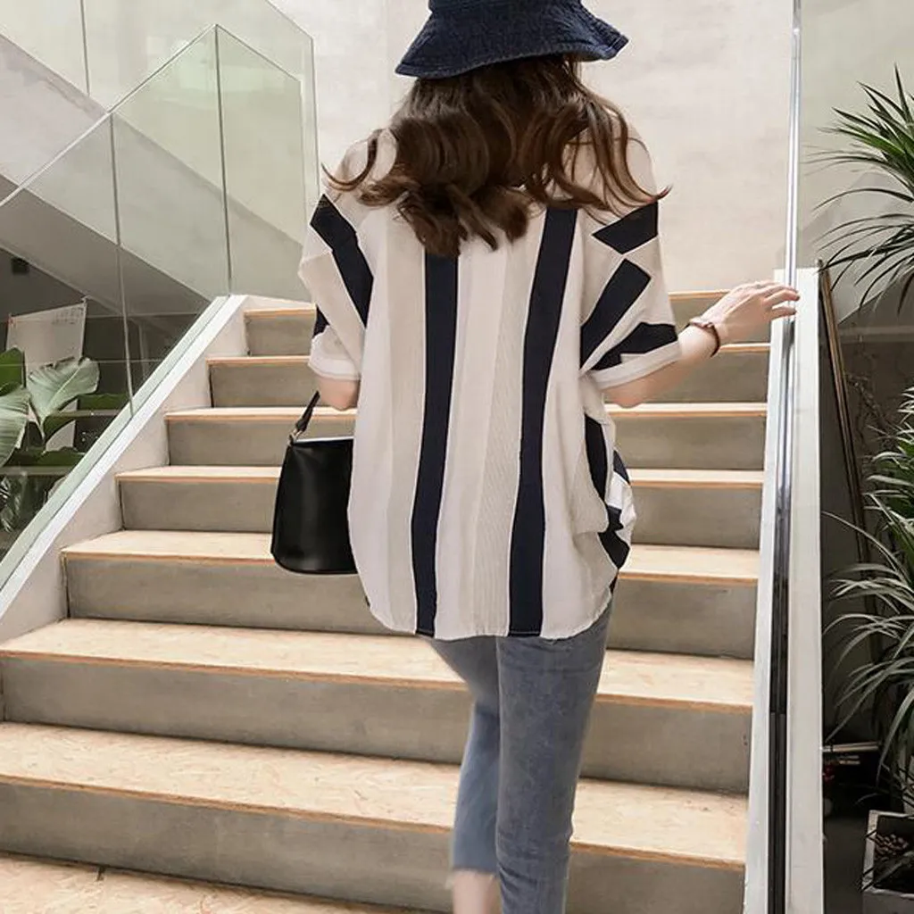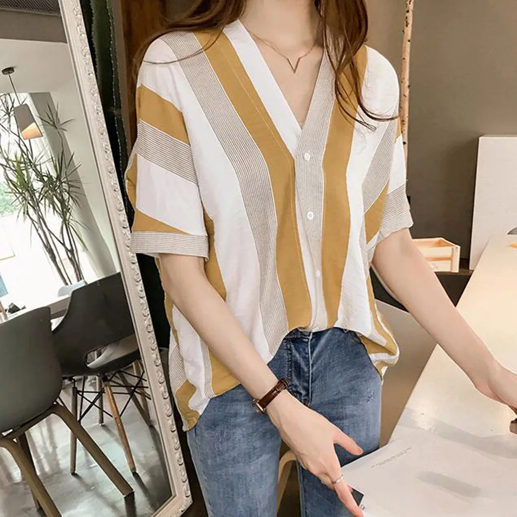 Особенности: винтажный, v-образный вырез, короткий рукав,Повседневные комбинированные топы. Полосатые рубашки,.