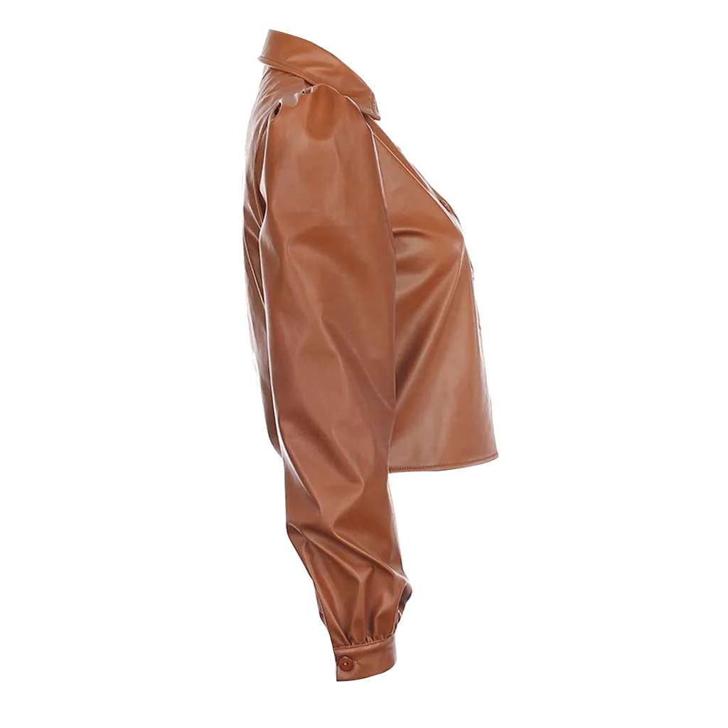 Модная женская матовая блузка из искусственной кожи, винтажная однотонная блузка с пуговицами и буфами, топы с длинными рукавами, блузка, новинка 2020