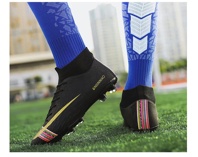 Мужские футбольные бутсы, бутсы для футбола, Длинные шипы, TF шипы, высокие ботильоны, кроссовки, мягкая домашняя обувь для футбола
