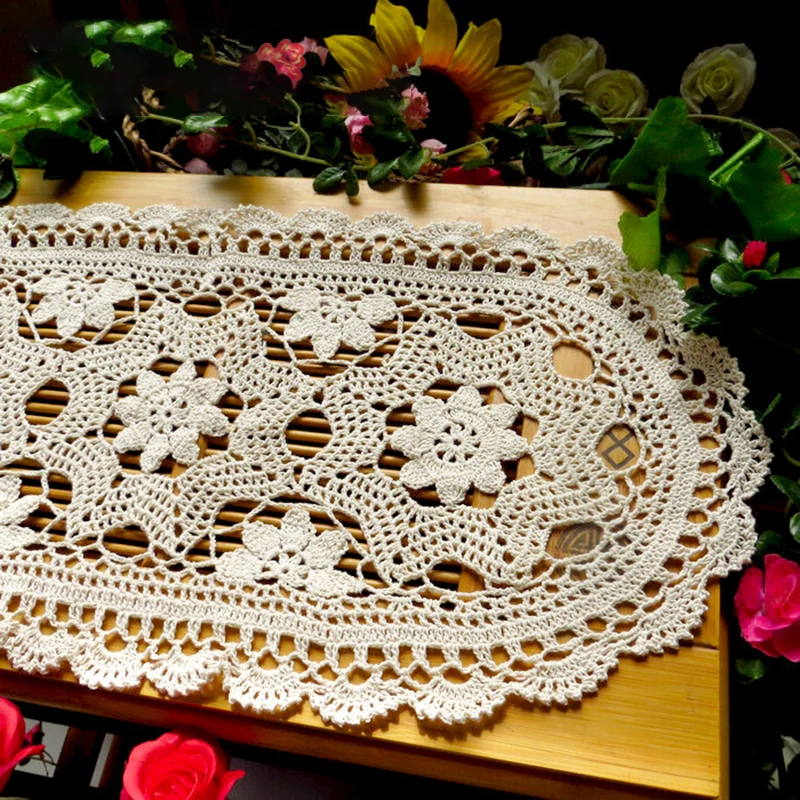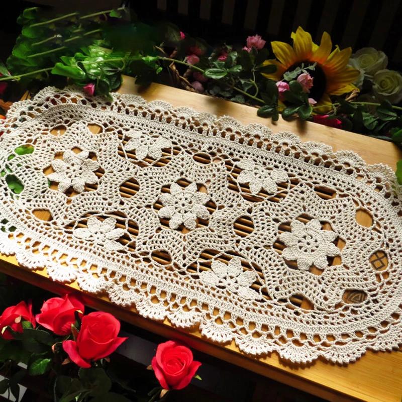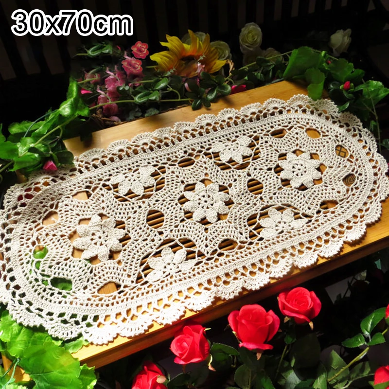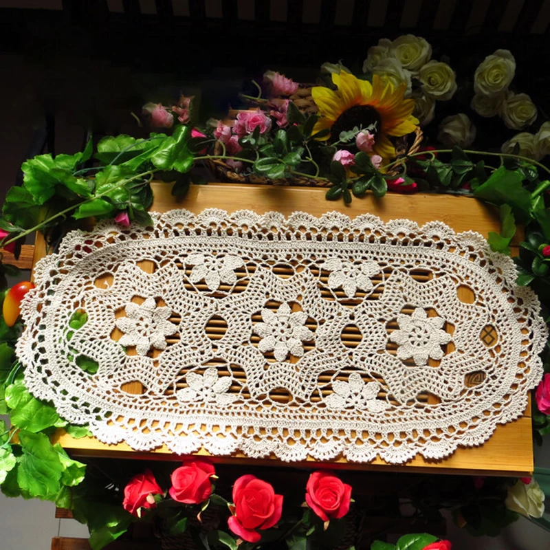 * Американский Сельский Винтажный кружевной крючком скатерть бежевый 30*70 смОвальныйНастольная дорожка