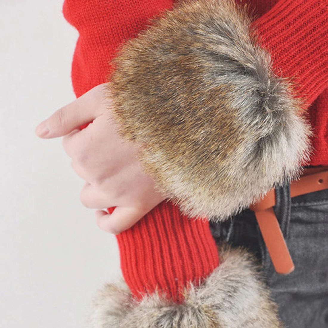 Модные зимние теплые женские эластичные манжеты на запястье из искусственного меха, теплые плюшевые манжеты