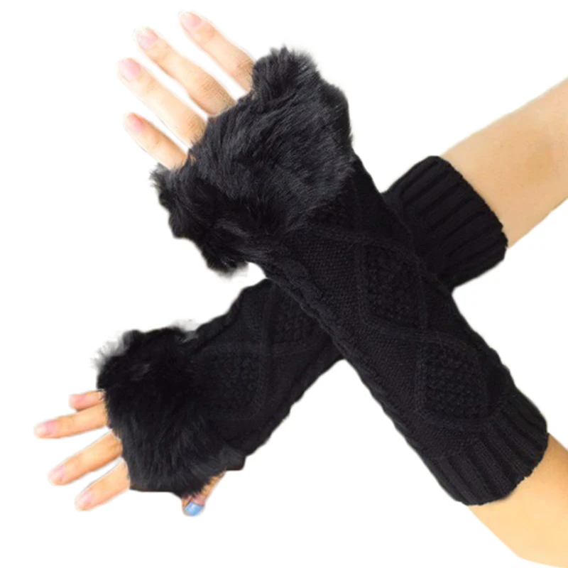 Женские теплые вязаные перчатки без пальцев, длинные зимние теплые перчатки для рук