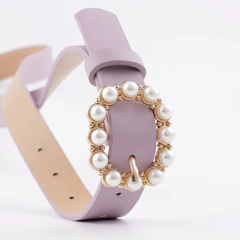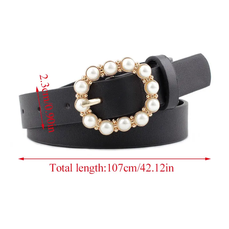Модный жемчужный декоративный тонкий ремень с круглой пряжкой, повседневный пояс из полиуретановой кожи