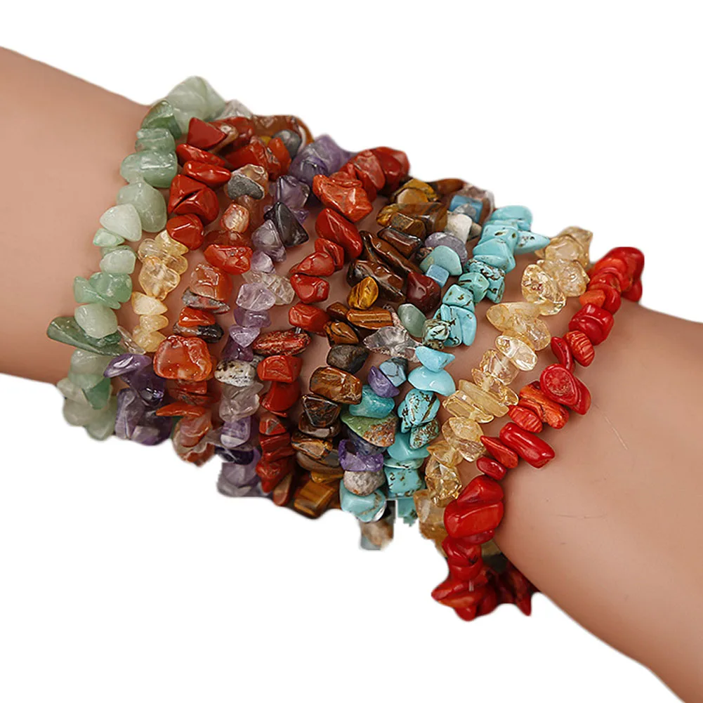 Чакра скошенный сырой натуральный камень Исцеление йогой кварцевый растягивающийся браслет