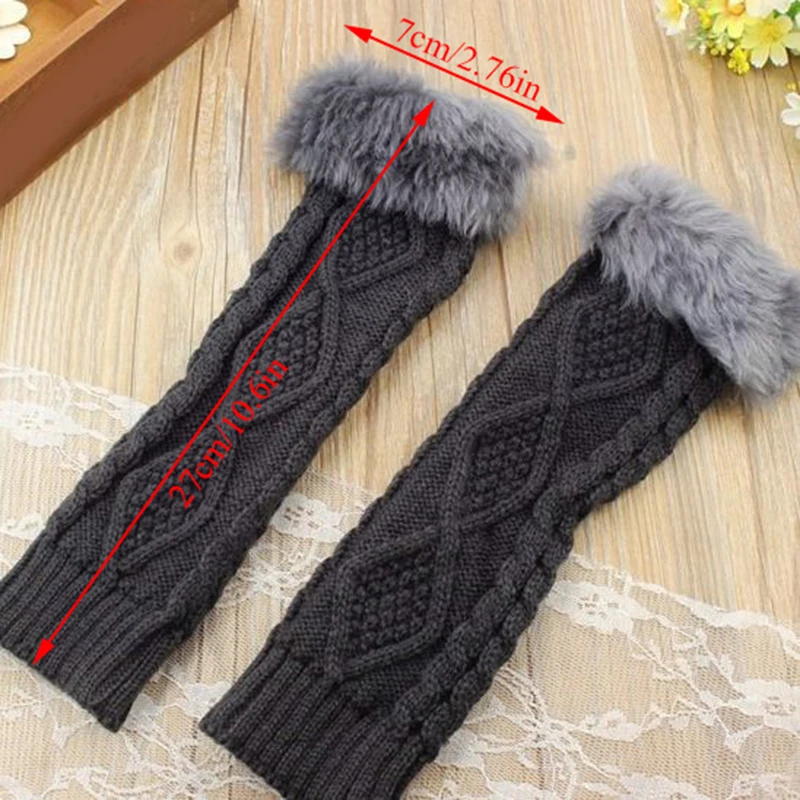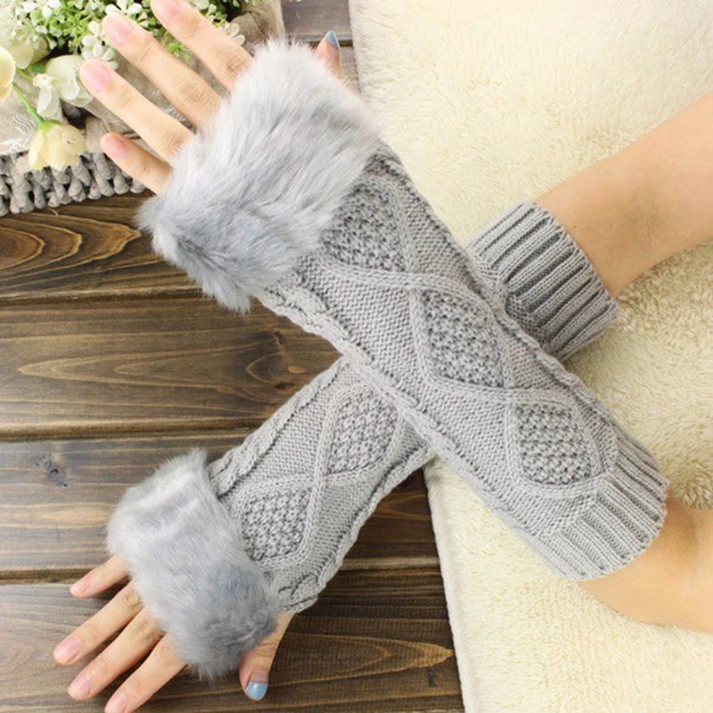 Женские теплые вязаные перчатки без пальцев длинные зимние теплые перчатки