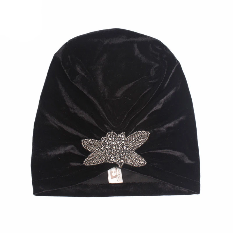 Мягкая бархатная тюрбан шляпа мусульманская Индия Кепка элегантная бисерная шапочка с цветком Кепка Chemo Кепка