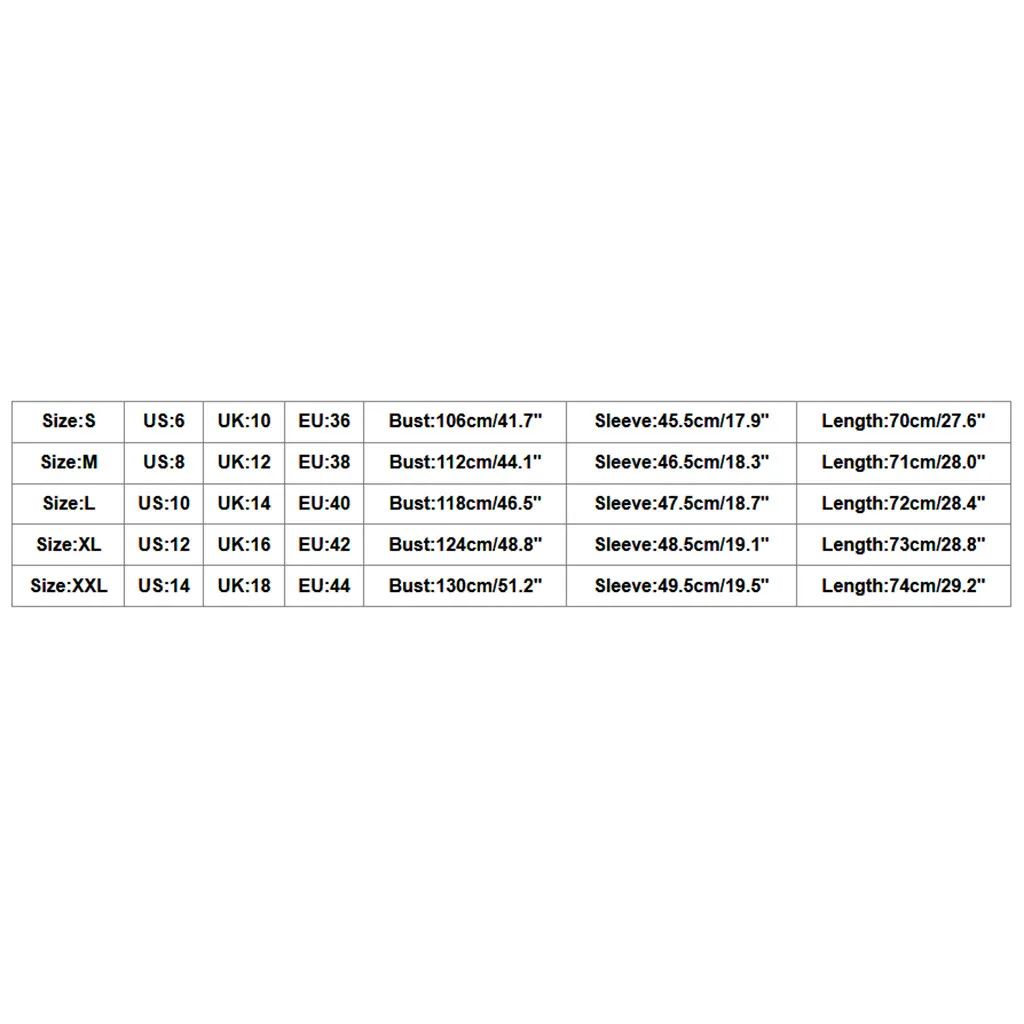 Размер Свяжитесь с нами Великобритания ЕС Обхват груди Рукава Длина S 6 10 36 106 см/41,7" 45,5 см/17,9" 70 см/27,6" М 8 12 38 112 см/44,1" 46,5 см/18,3" 71 см/28,0" L 10 14 40 118 см/46,5" 47,5 см/18,7" 72 см/28,4" XL 12 16 42 124 см/48,8" 48,5 см/19,1" 73 см/28,8" XXL 14 18 44 130 см/51,2" 49,5 см/19,5" 74 см/29,2"