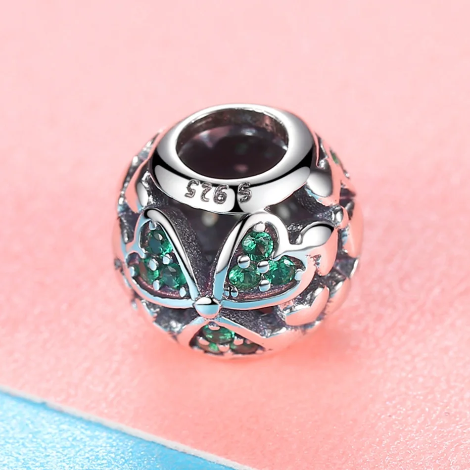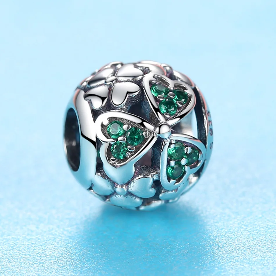 Дизайн:Зеленый прозрачный CZ символ любви счастливый клевер