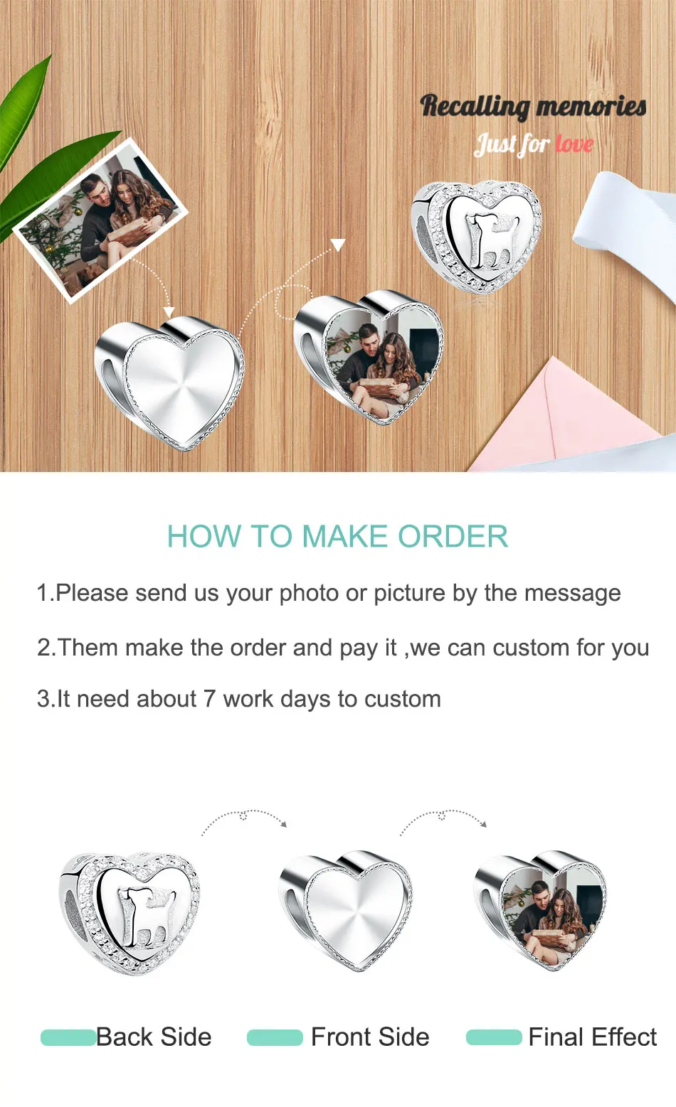 1.Обслуживание:Мы предоставляемБесплатноИндивидуальное фото обслуживание.2.Метод:Вы можете просто отправить нам фотографию, которую вы хотите, прямо в сообщении.3.Время доставки:ВШарм на заказДолжно бытьИндивидуальныеИ это нужно о5-10 днейЧтобы произвести, надеюсь, что мой ценный клиент может понять. Пожалуйста, не волнуйтесь, когда Шарм закончится, мы отправим быстрее.4.Если у вас есть какие-либо вопросы, свяжитесь с нами, мы будем рады решить проблемы для вас.