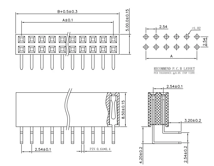 2,54 мм 0,100 "шаг 2x17Pin Dual Row PCB наружный коллектор сквозные отверстия для монтажа на печатной платы