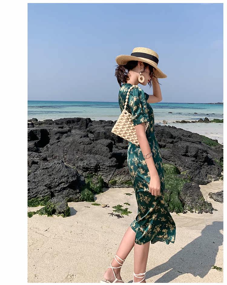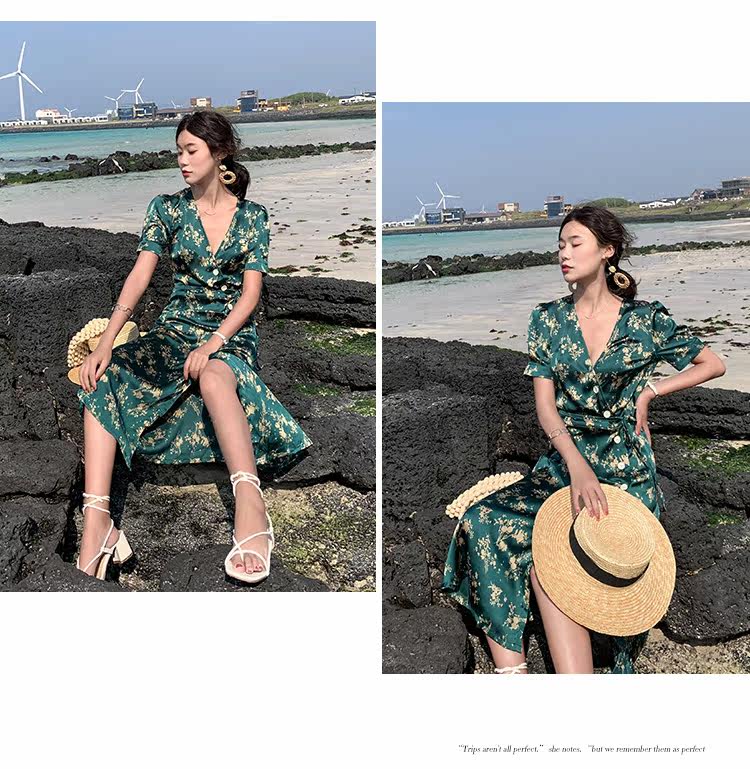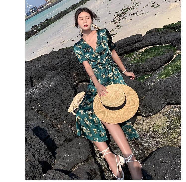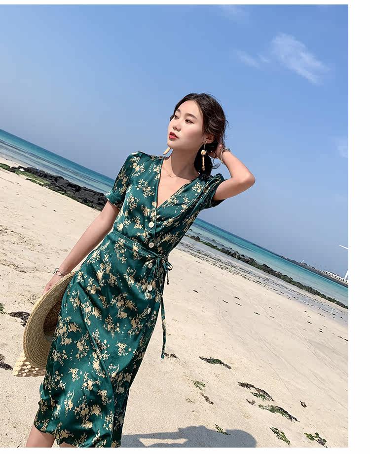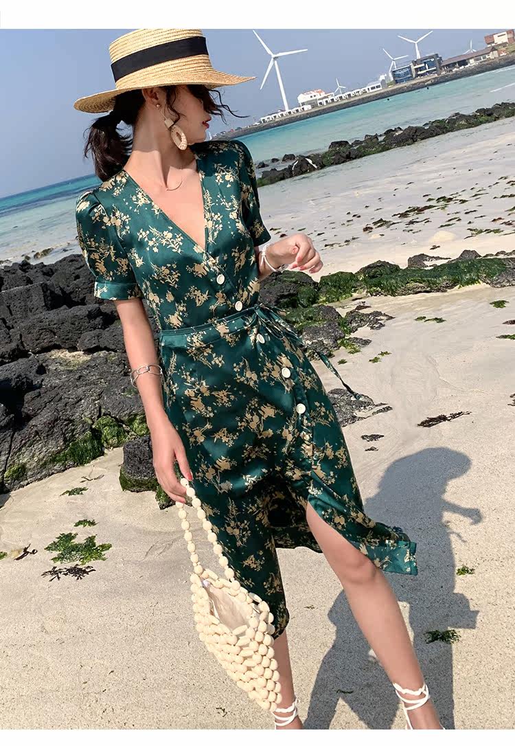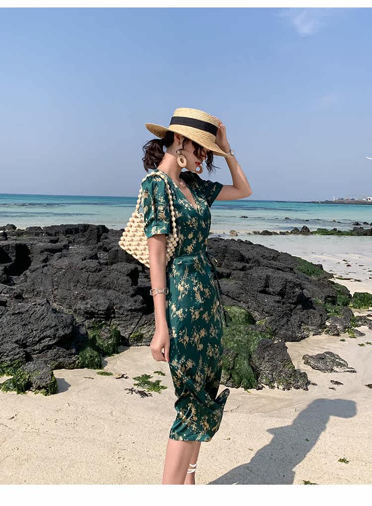 Новинка 2020, женское летнее винтажное платье с принтом, женское платье с коротким рукавом на шнуровке, Бандажное платье с v-образным вырезом, праздничные платья DG237