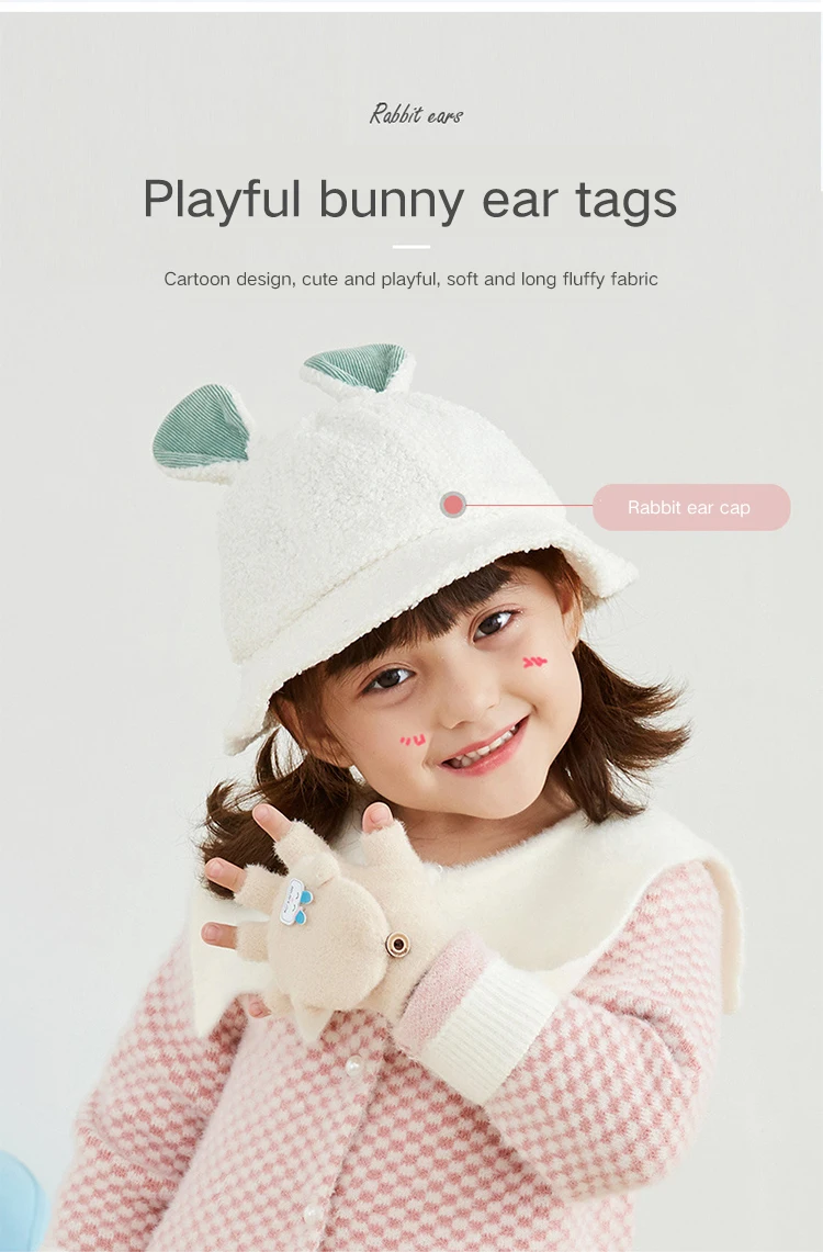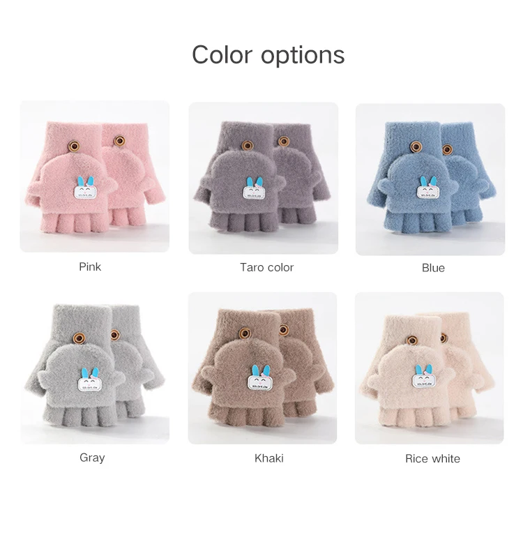 3-6 Years Baby Cartoon Gloves Winter kids Half Finger Flip Cover Mittens Children Autumn Boys Girl Windproof Warm Cute Glove