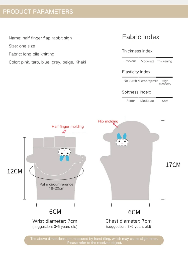 Applicable gender: Unisex / Men and women Function: keep warm Pattern Type: Cartoon Style: Half-finger gloves Color: dark brown, gray, khaki, blue, pink, beige size: one size Suitable seasons: Autumn and Winter Size: 12*6cm boys and girls aged 3-6 are recommended 2-in-1 gloves, Cute cartoon design, 6 colors can better decorate winter and bring color and happiness to children. Note: 1.Please allow 1-2 cm error due to manual measurement. pls make sure you do not mind before you bid. 2.Due to the difference between different monitors, the picture may not reflect the actual.