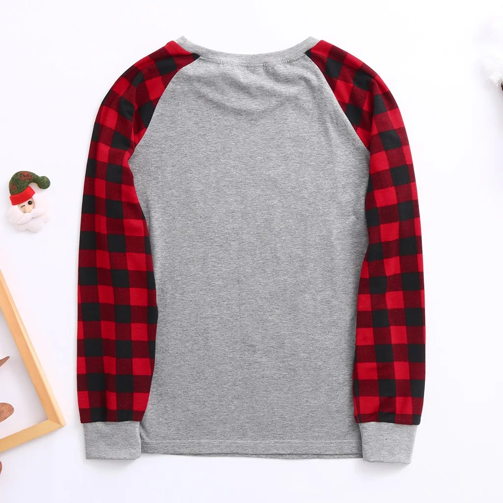 Рождественская Женская мама, клетчатый топ с буквенным принтом, блузка + штаны, семейная одежда, пижамы