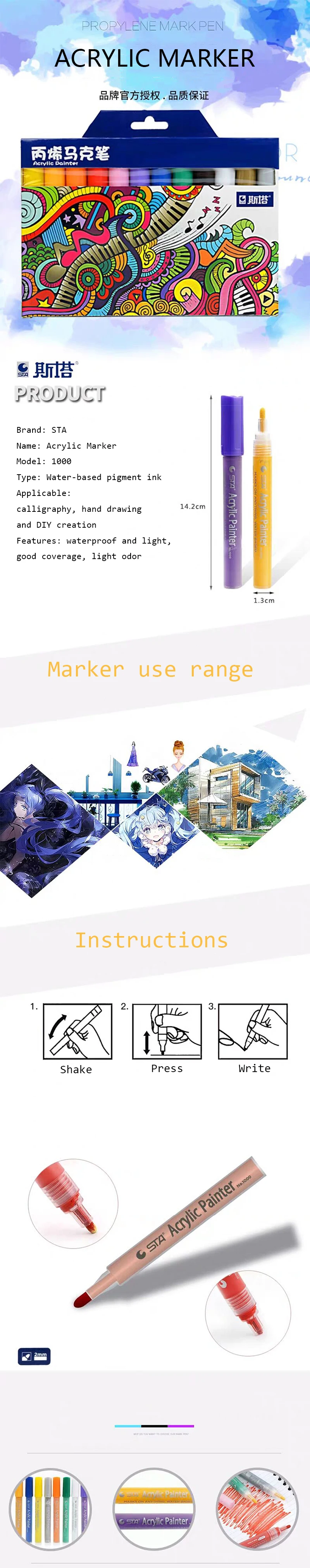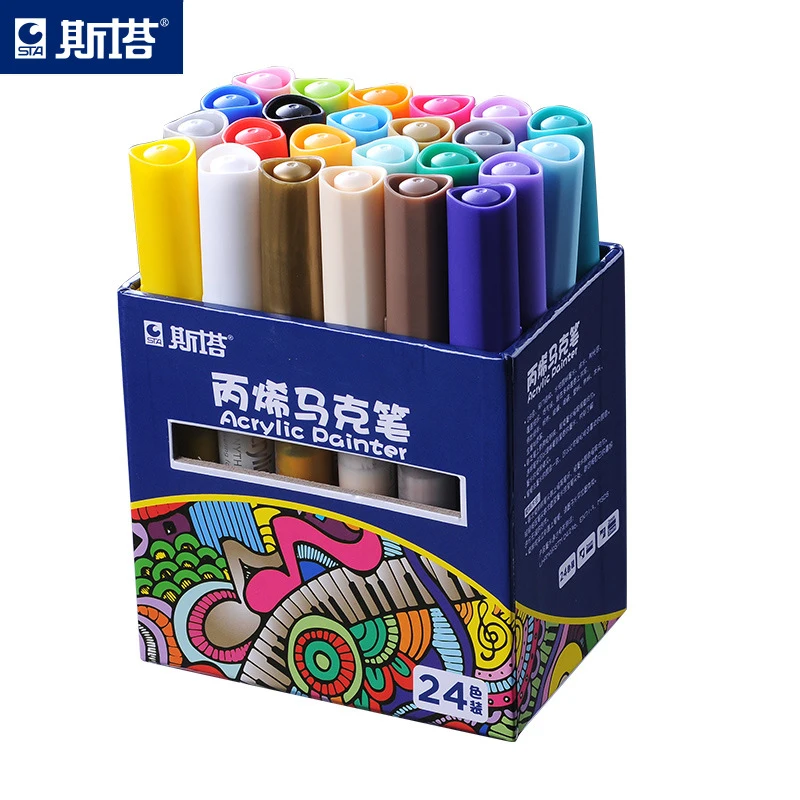 STA 12/24 Цвета/набор акриловых Перманентный маркер для рисования ручка для Керамика стекло Rock фарфоровая кружка дерево ткань холст искусство рисования