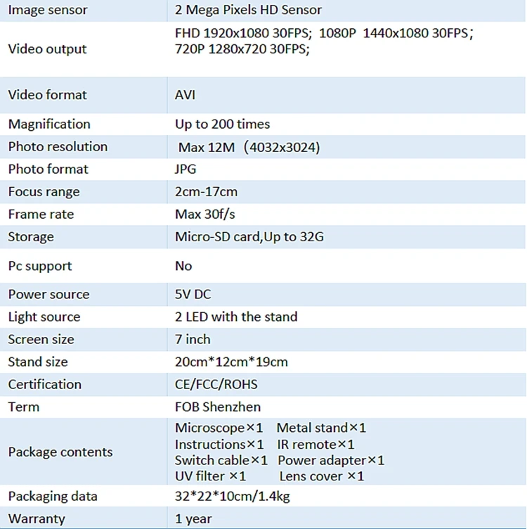 Microscope×-1 шт. Металлический stand×-1 шт. Instructions×-1 шт. ИК remote×-1 шт. Переключатель cable×-1 шт. Мощность adapter×-1 шт. УФ-фильтр × 1 шт. Крышка объектива × 1 шт.