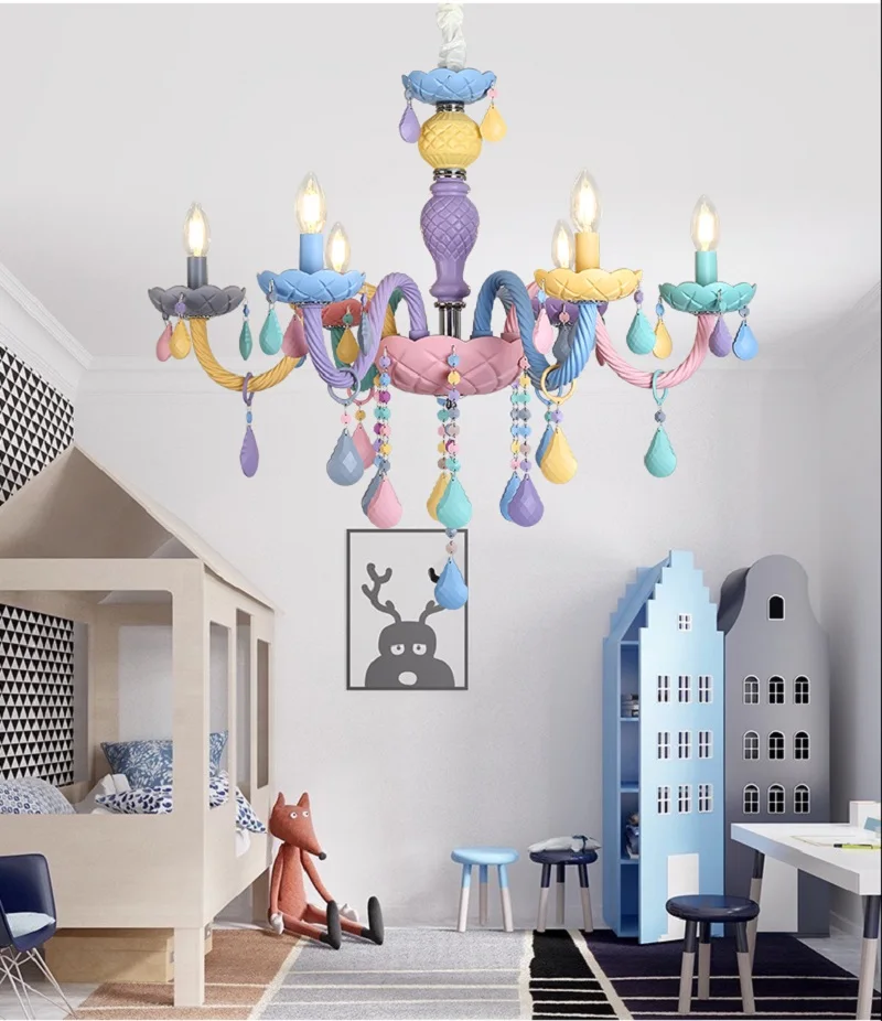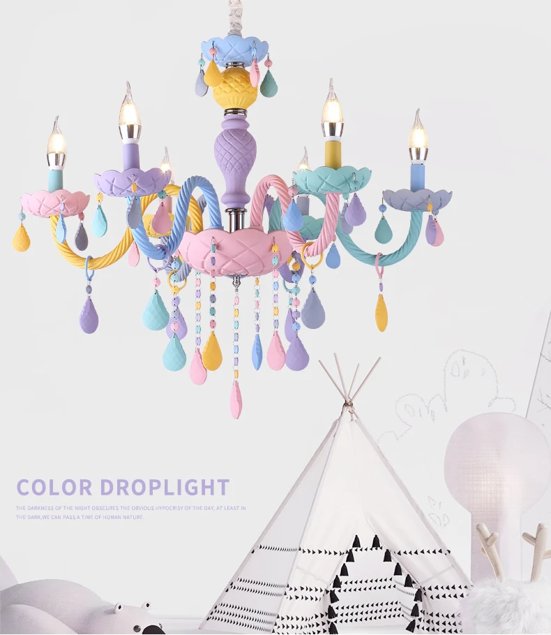 Хрустальная люстра Macaron, цветной подвесной светильник для детской спальни, радужная лампа, фантазийный светильник принцессы для девочки, подвесной светильник