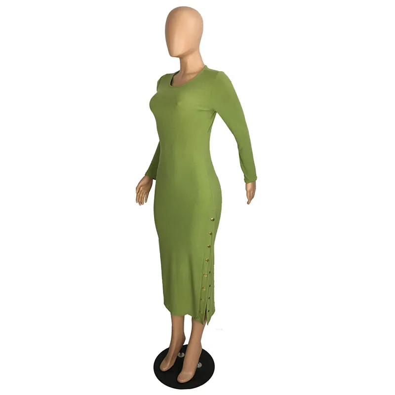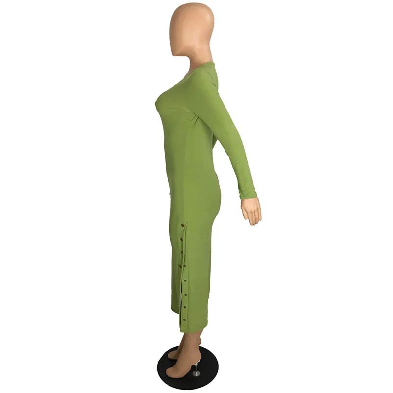 Женское модное Повседневное платье средней длины с вырезами и боковыми пуговицами