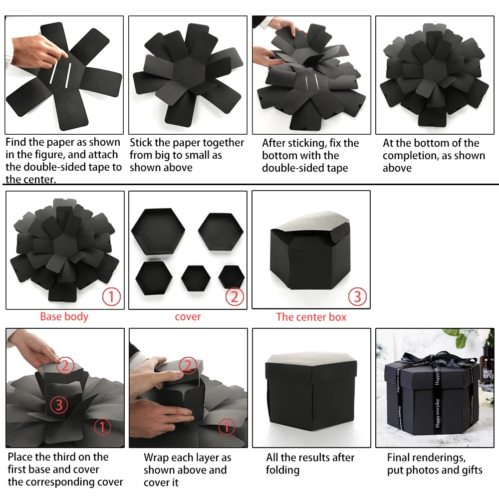 Размер квадратной коробки: 36*36*13 см Размер шестигранной коробки: 47*47*15 см Некоторые дешевые взрывающиеся коробки из-за их небольшого размера. Пожалуйста, убедитесь в размере.