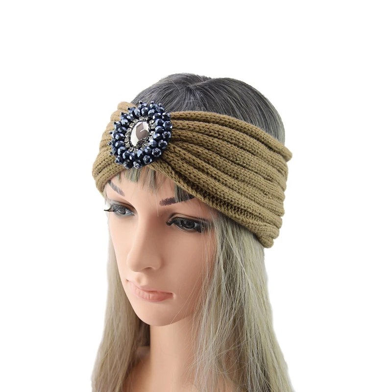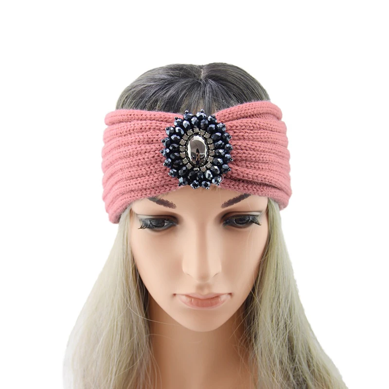 1 шт. Зимний вязаный крючком Кристалл Стразы эластичная повязка на голову головной убор