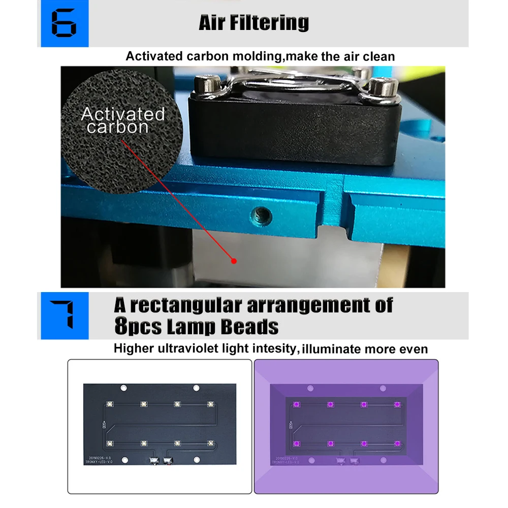 Фильтрация воздуха-модуль с активированным углем, делает воздух чистым. Прямоугольной расположения 8 шт. светодиодные лампы бусины, выше, ультрафиолетовый светильник рисунки светились освещения даже больше.