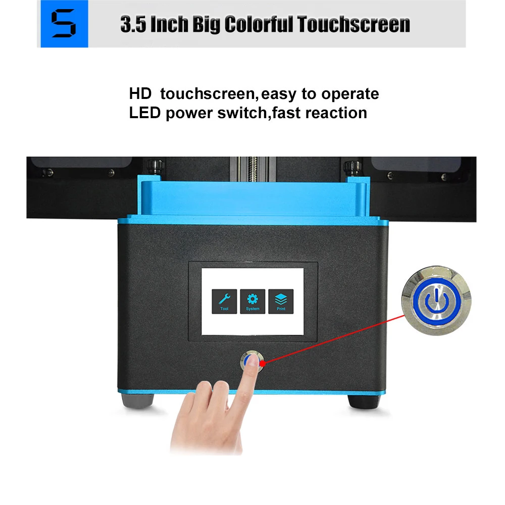 Максимальный размер печати 120*67*180 мм. 3,5 дюймов Большой цветной сенсорный экран, простота в эксплуатации, led выключатель питания, быстрая реакция.