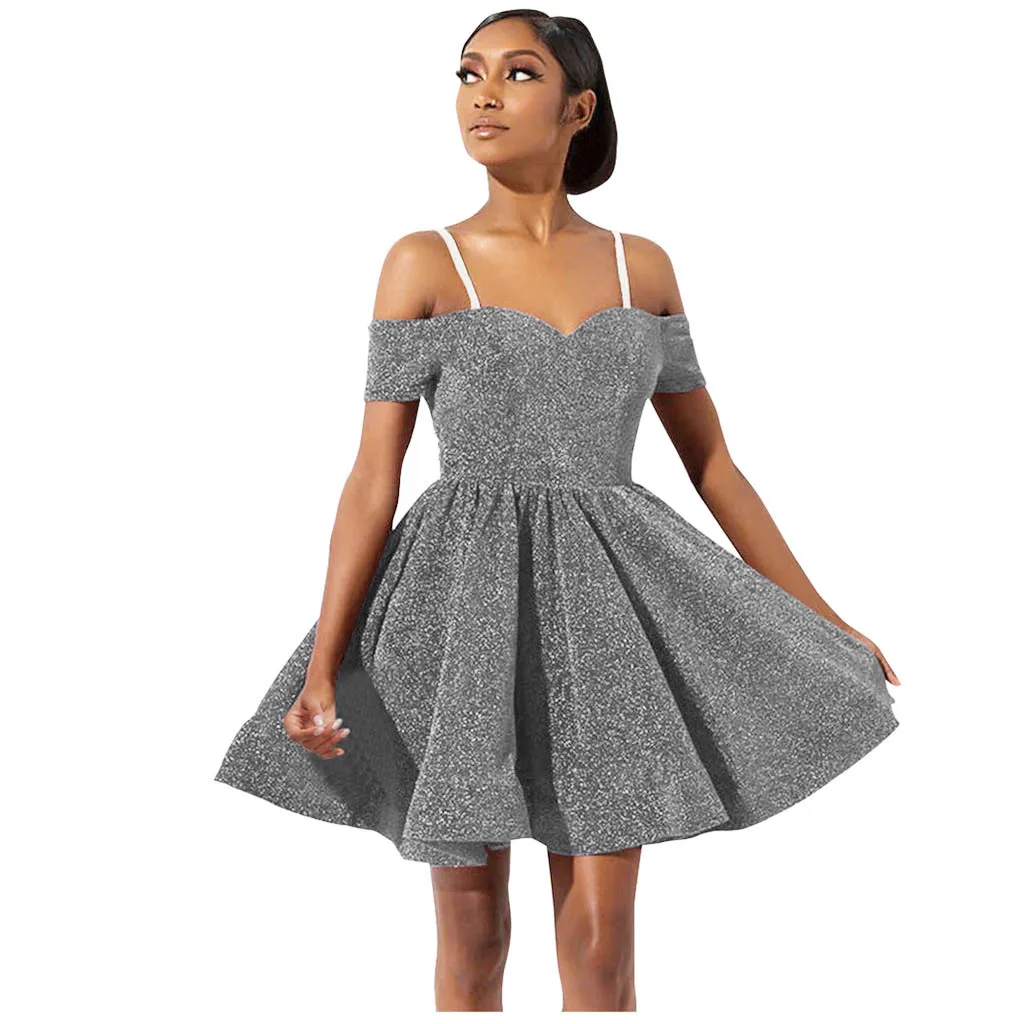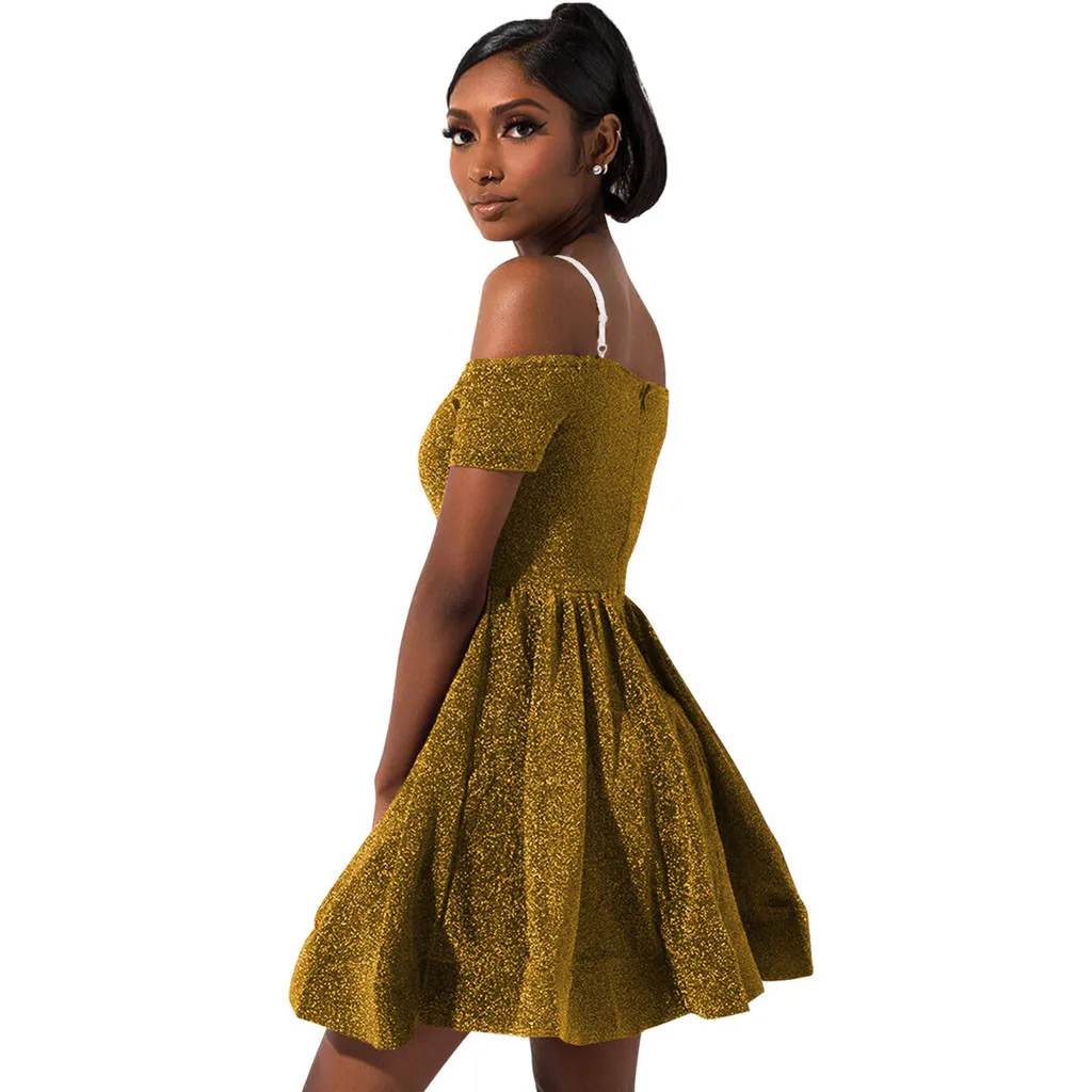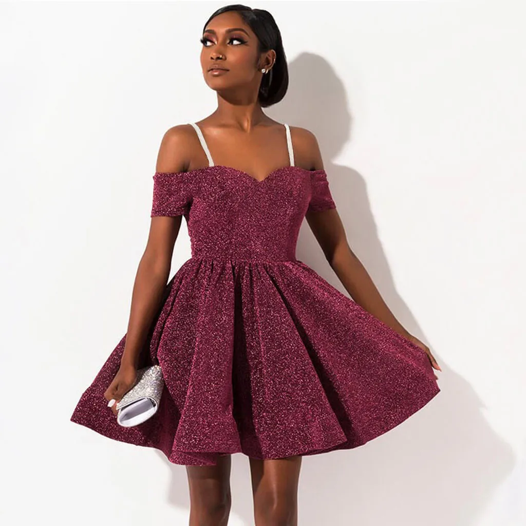 Для женщин Коктейль с коротким рукавом с коротким и широким подолом платья с открытыми плечами Коктейльные Вечерние платья