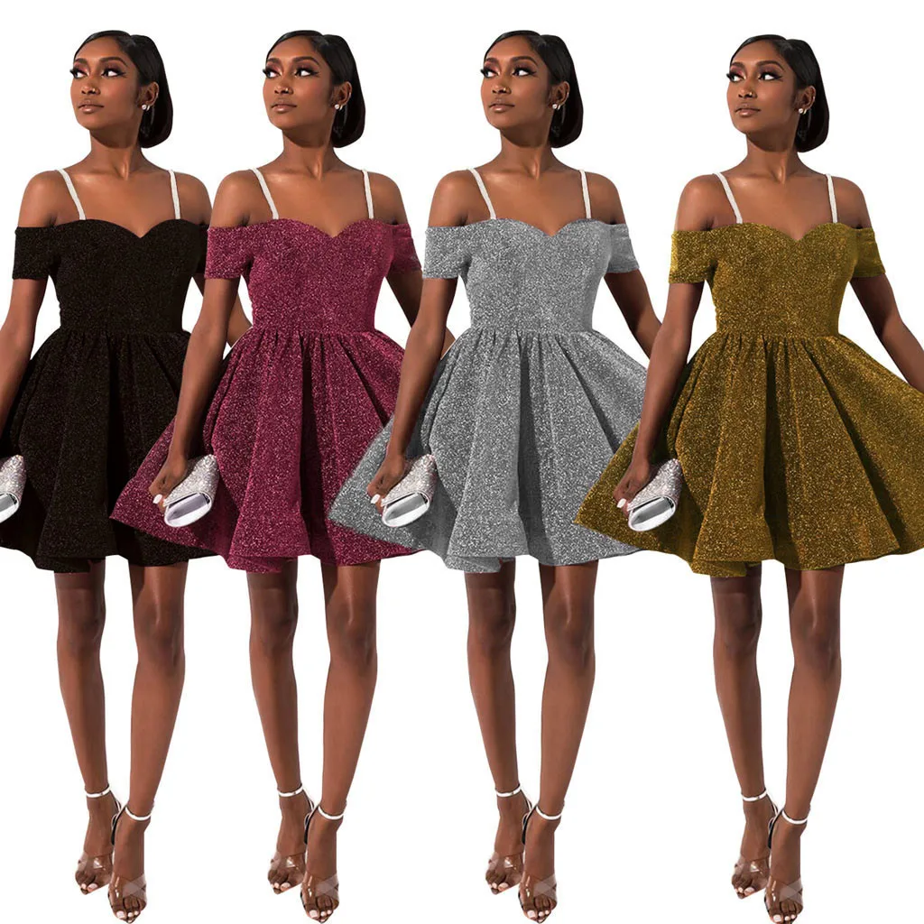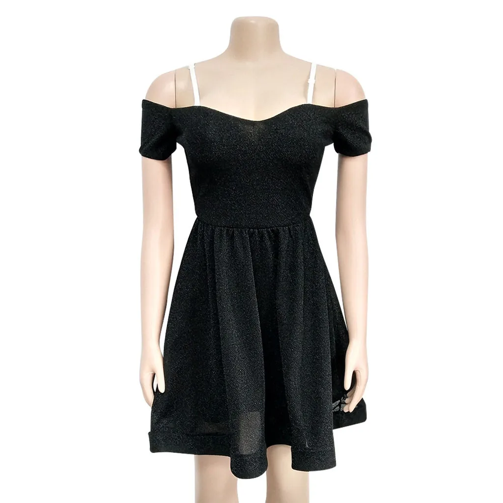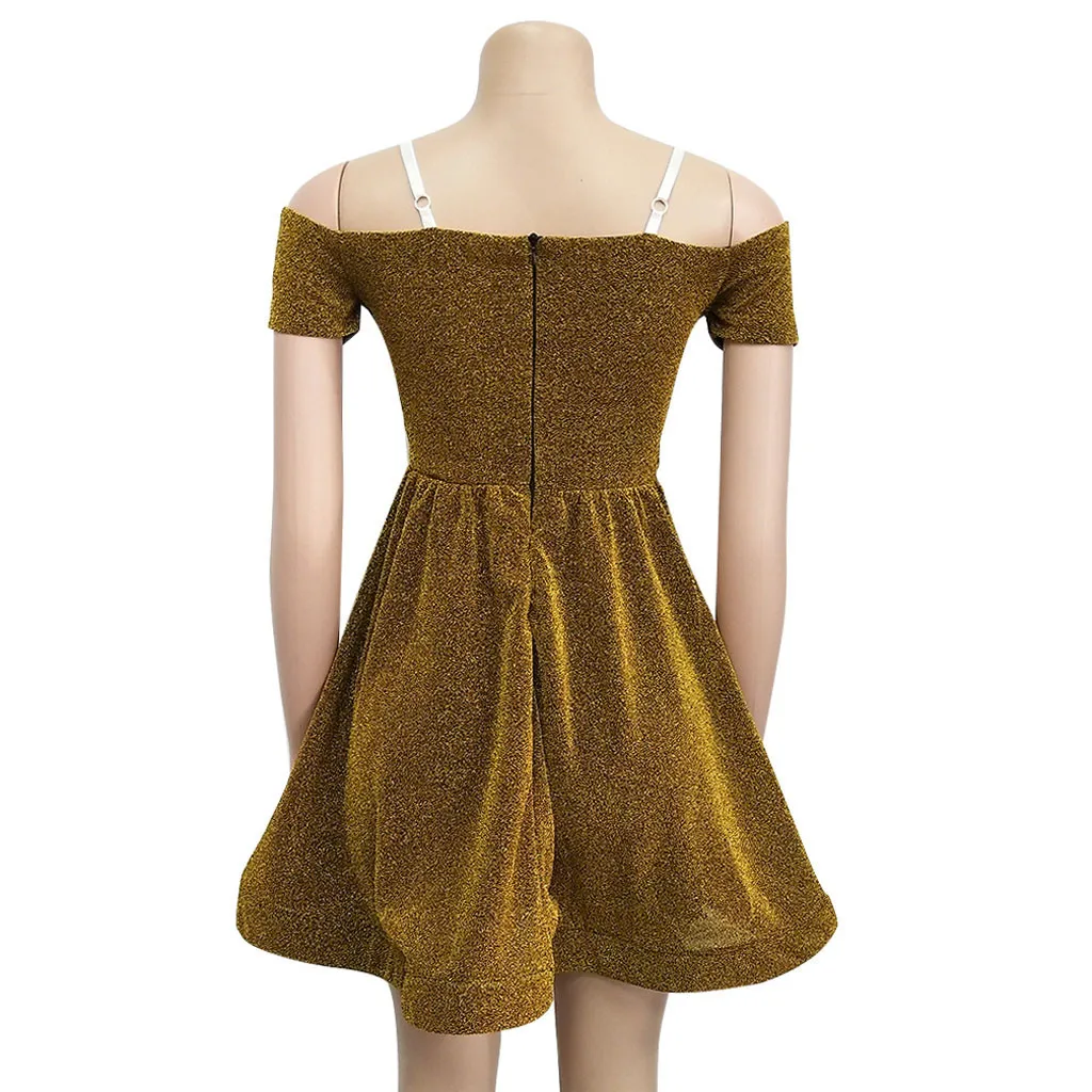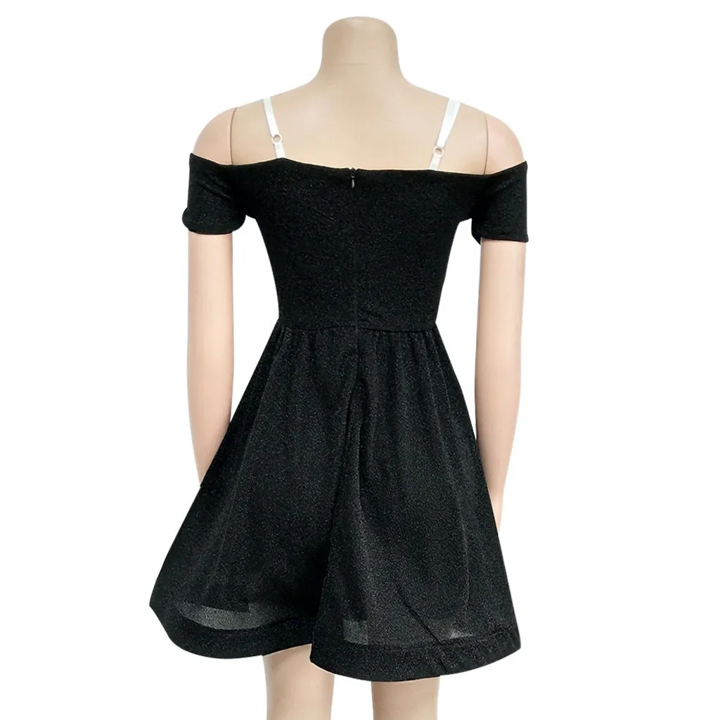 Для женщин Коктейль с коротким рукавом с коротким и широким подолом платья с открытыми плечами Коктейльные Вечерние платья