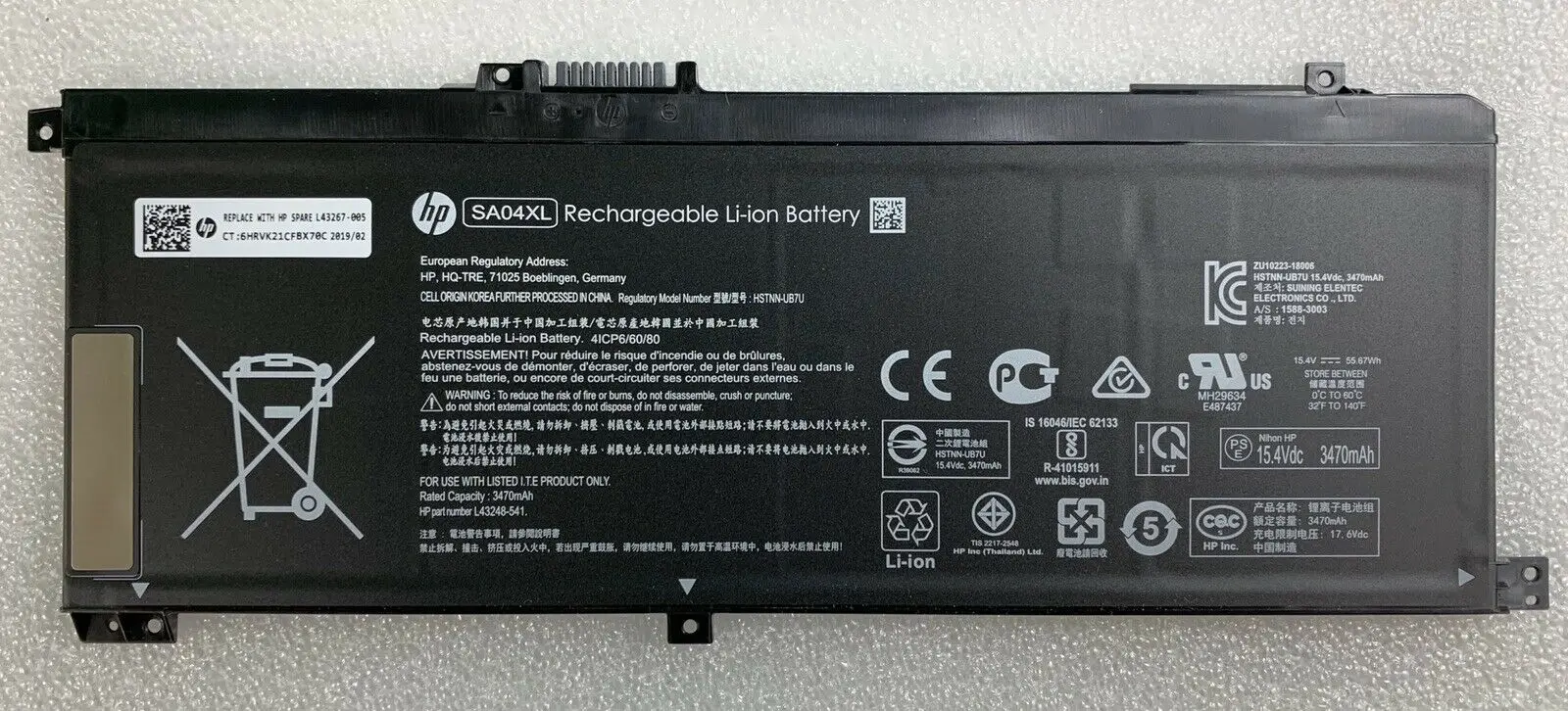 HSTNN-OB1F, HSTNN-OB1G, HSTNN-UB7U, L43248-541, L43248-AC1, L43248-AC2, L43267-005, SA04XL