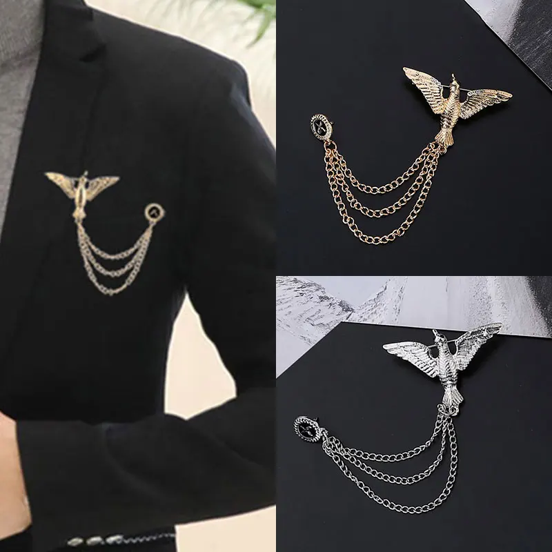 Модная Винтажная брошь с золотым орлом, мужской костюм, аксессуары, цепочка, брошь с кисточками, булавка
