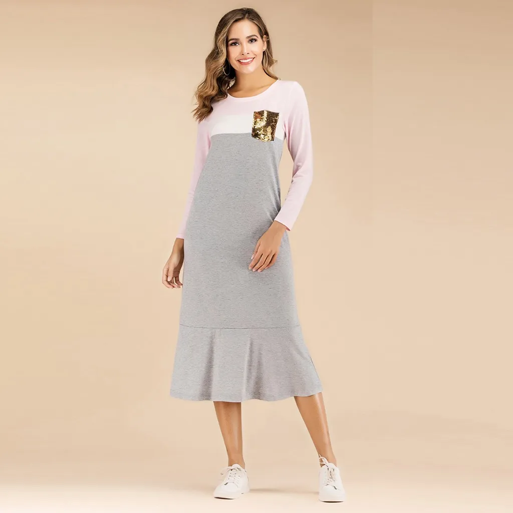 Модное женское свободное лоскутное платье с блестками и карманами, Свободное длинное платье, юбка