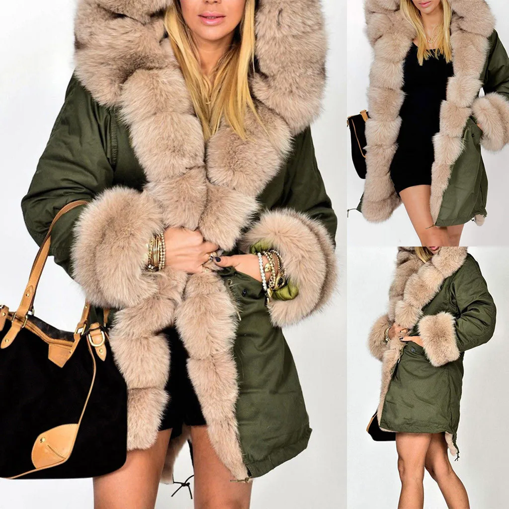 Женская зимняя куртка с капюшоном и меховым воротником, плотная теплая Длинная ветровка, верхняя одежда, пальто