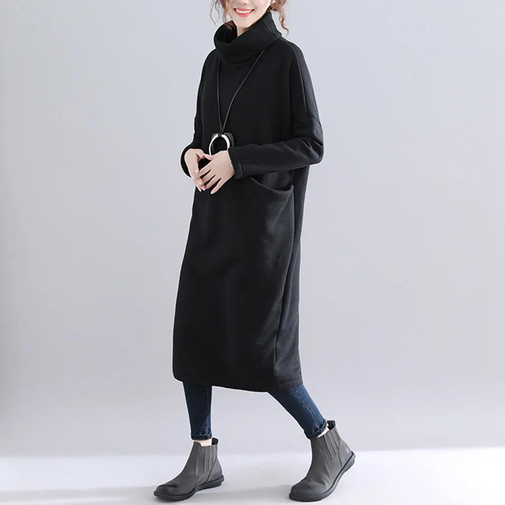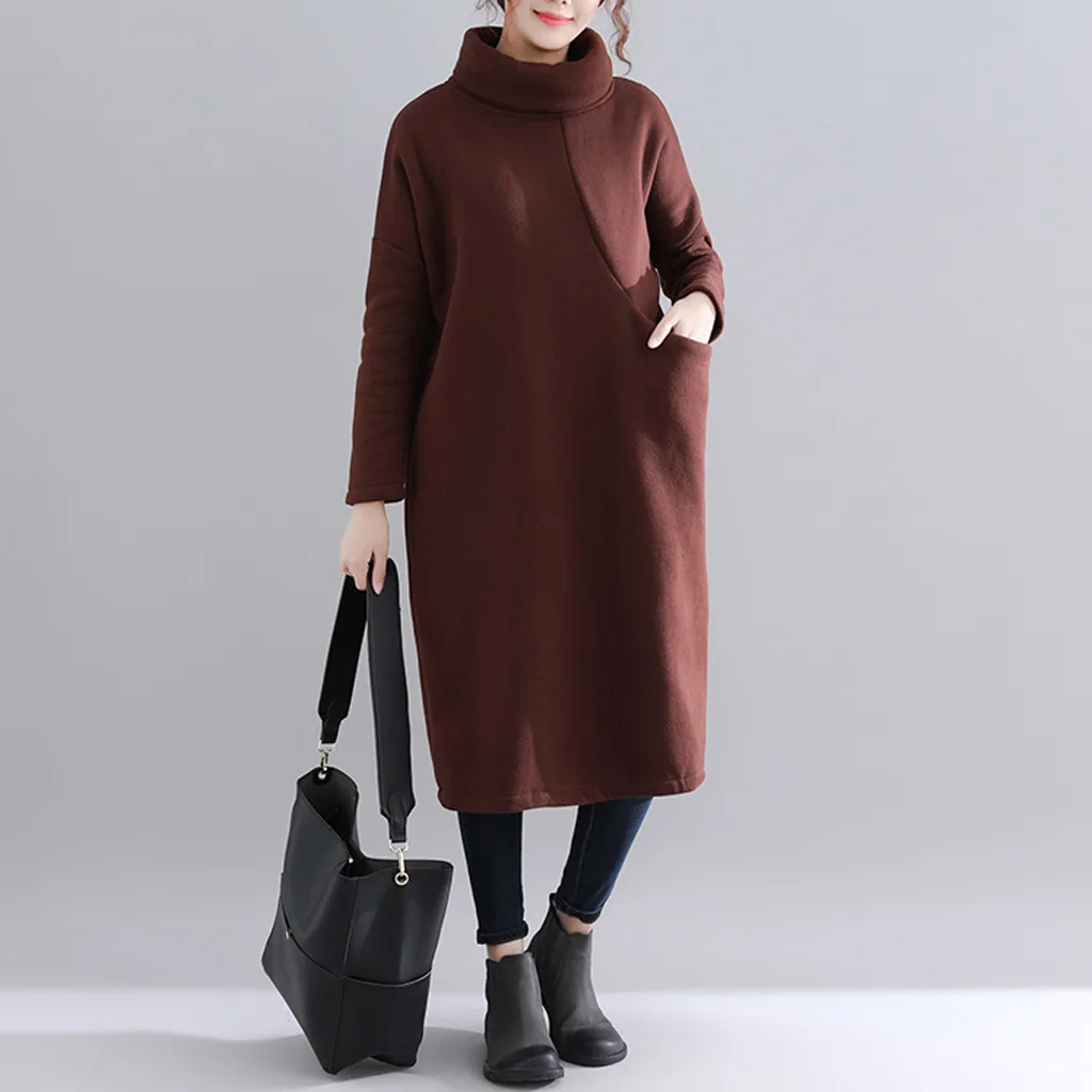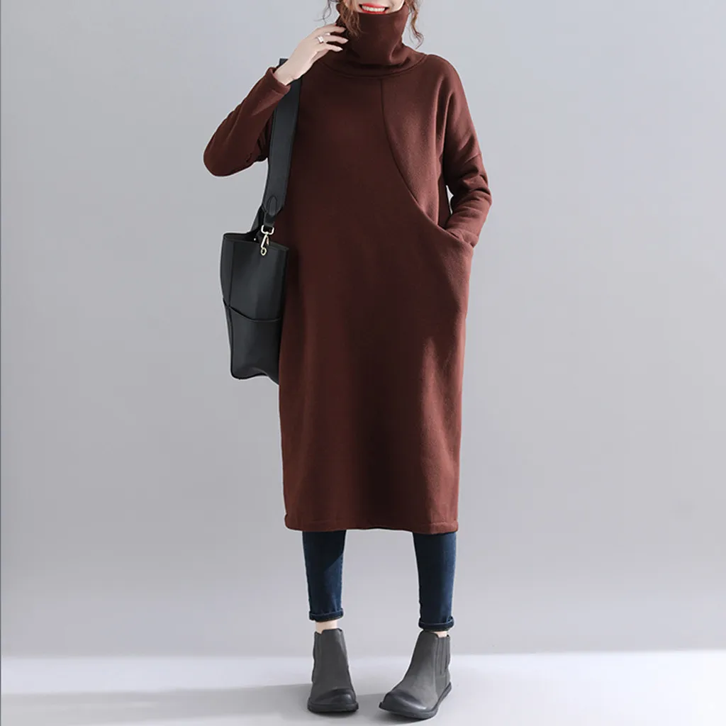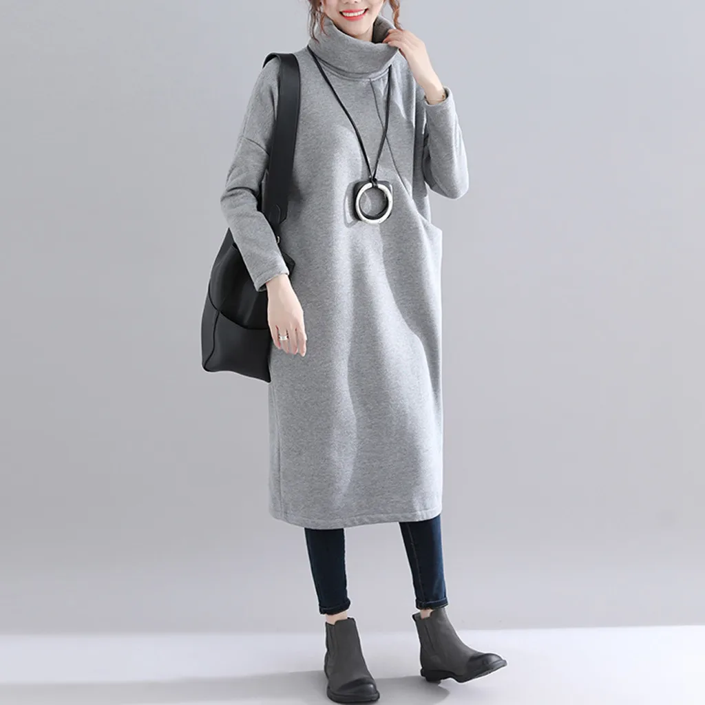 Женское длинное платье-рубашка с высоким воротником, простое платье-свитер средней длины