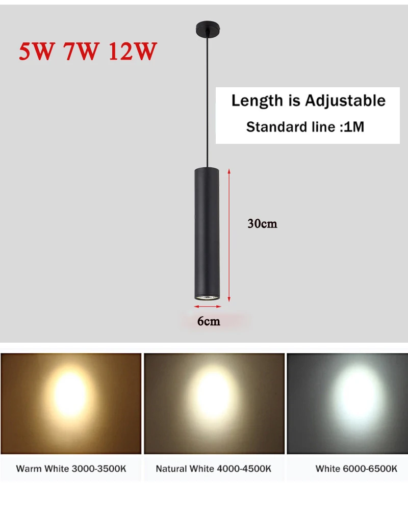 Dimmable led Pendant Lamp Long Tube lamp Kitchen Island Dining Room Shop Bar Decoration Cylinder Pipe Pendant Light Kitchen Lamp Item description: Modern led Pendant Light Material: Aviation-grade aluminunm Diameter :,60*300mm Length of wire: 100cm, adjustable. Material: Aluminum Power : 5w 7w 12w Light Color : Warm White 3000K , Cool White 6000K,Natural White Voltage: AC85V-265V Ideal for use in Sitting room/Bedroom/Hotel/Leisure area/Club/Bar/Cafe room Decorative lighting. Package included : 1 piece pendant lamp .