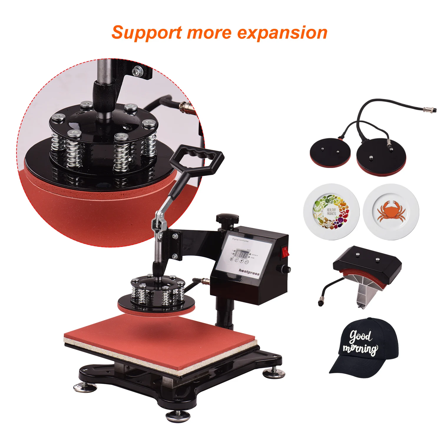 Машина для термопечати может передавать буквы, цифры и изображения на футболки, одежду, сумки, коврики для мыши, керамическую плитку, тарелки, колпачки, кружки и другие предметы с плоским покрытием. Идеально подходит для хлопка, волокна, металла, керамики, стекла. Подходит для производства подарков, рекламы.