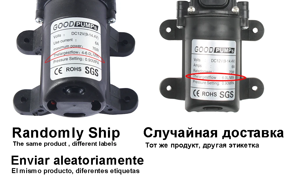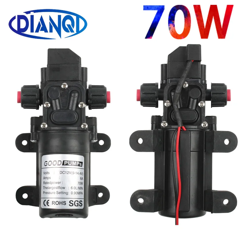 DC12V 6L/Min water high pressure diaphragm self-priming pump, widely used in farming (lawn and garden), tour vehicles