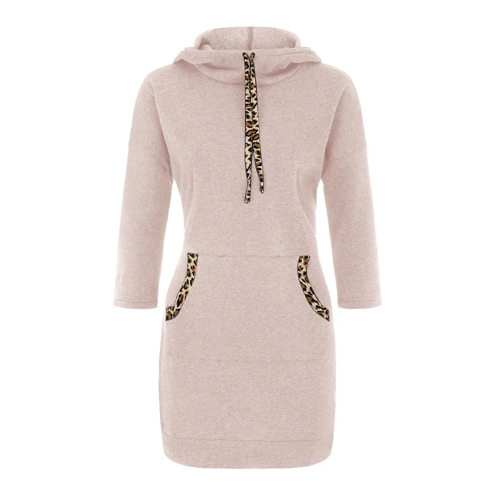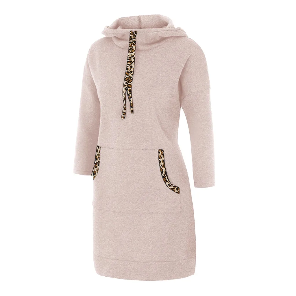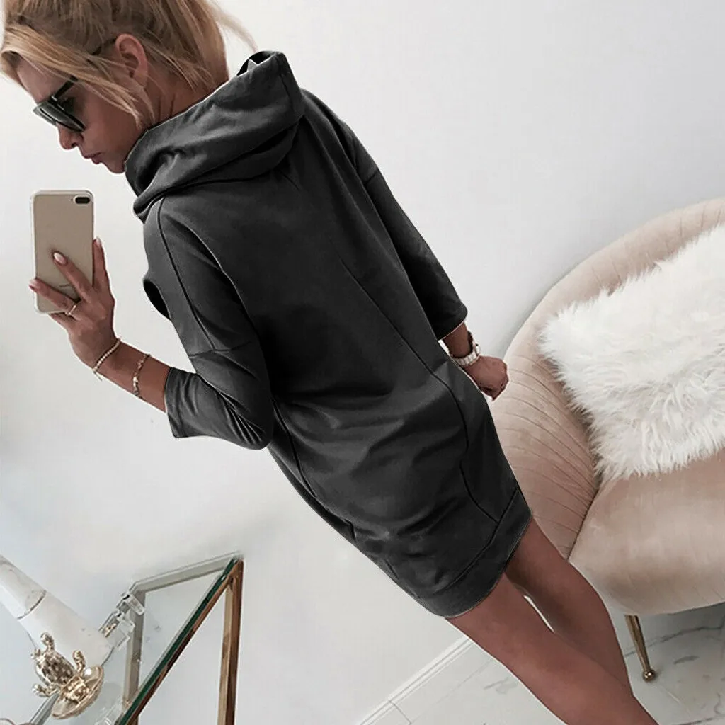 Женский однотонный джемпер с длинным рукавом, толстовка с капюшоном, платье